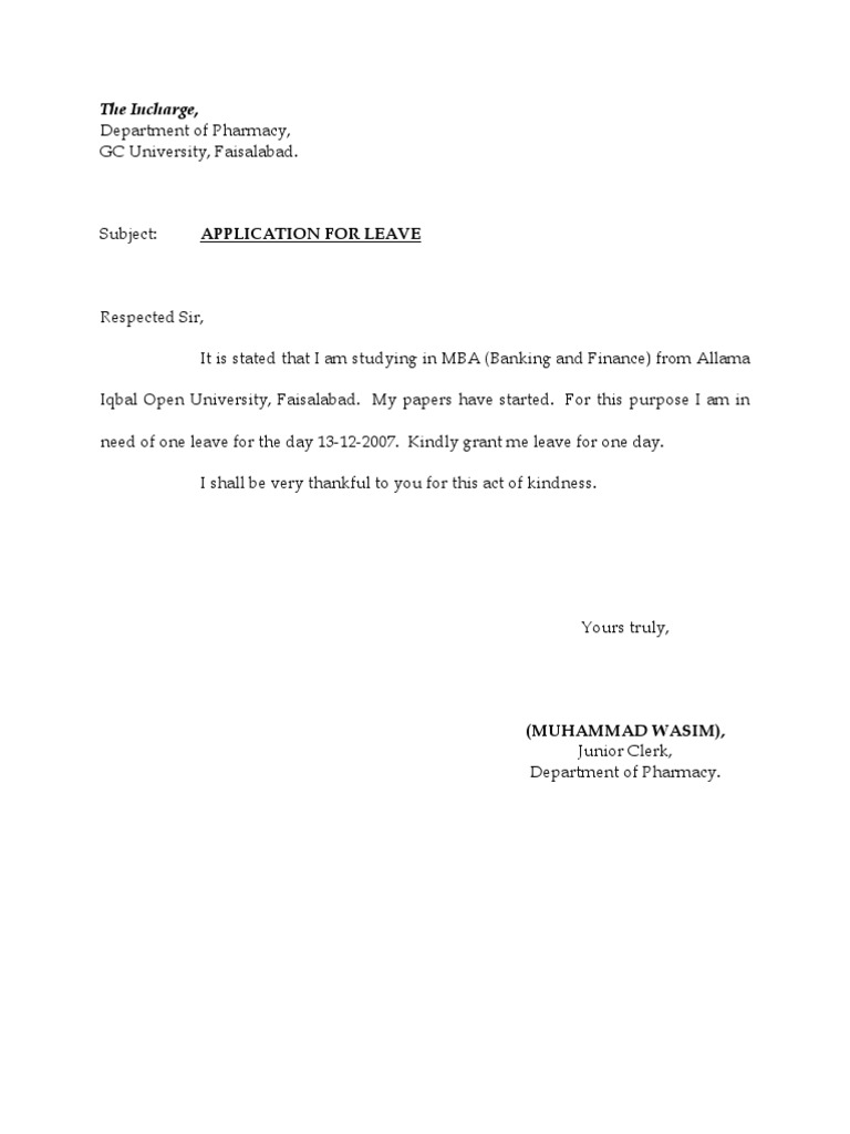 At times when he needs to take a leave, he is expected to apply for it using a leave application form. We also provide leave application writing services for our visitors on demand. There are different ways in how you address your concern to your supervisor. A leave of absence is an extended period of time off from your job. Leave application is a common way of asking or taking leave from the institution's authority.
